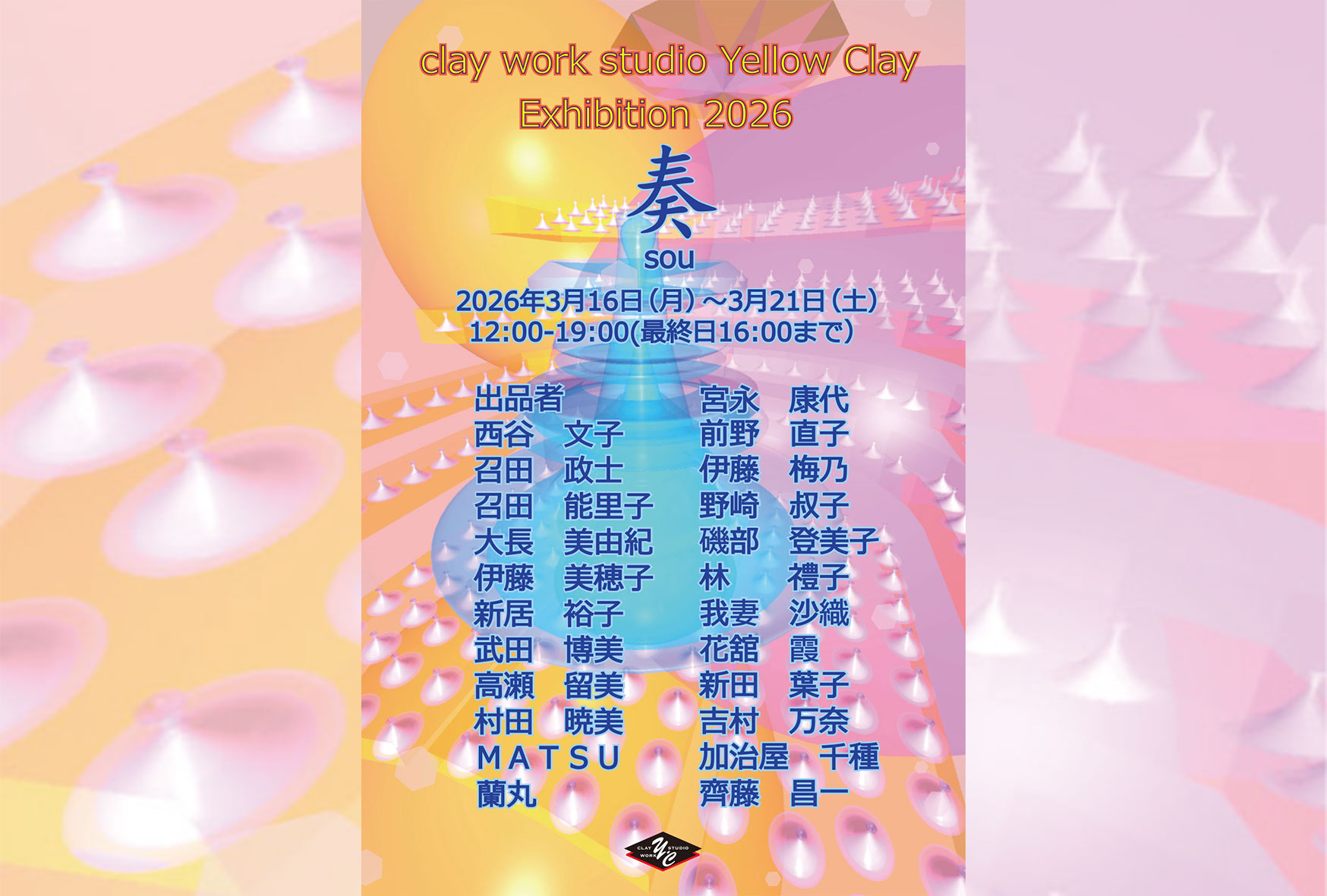 GalleryGallery うぇすと かいだん / はしご 展 2026 年 2 月 20 日 (金) ~ 28 日 (土) 陶芸スタジオ イエロークレイ作品展「奏」 2026 年 3 月 16 日 (月) ~ 21 日 (土) 青野 正 展 - 遠い山の端 - 2026 年 4 月 6 日 (月) ~ 11 日 (土) Exhibition Search展覧会検索 キーワード 開催年 全ての期間 2026年 2025年 2024年 2023年 2022年 2021年 2020年 2019年 2018年 2017年 2016年 2015年 2014年 2013年 2012年 2011年 カテゴリー 全て ライフスタイル メタル 陶芸 工芸 版画 イラスト 現代アート インスタレーション ライティング ミクストメディア オブジェ 絵画 art 展覧会 グループ展 東京 tokyo アート 絵画 銀座 ginza exhibition 展示のお申し込みはこちら