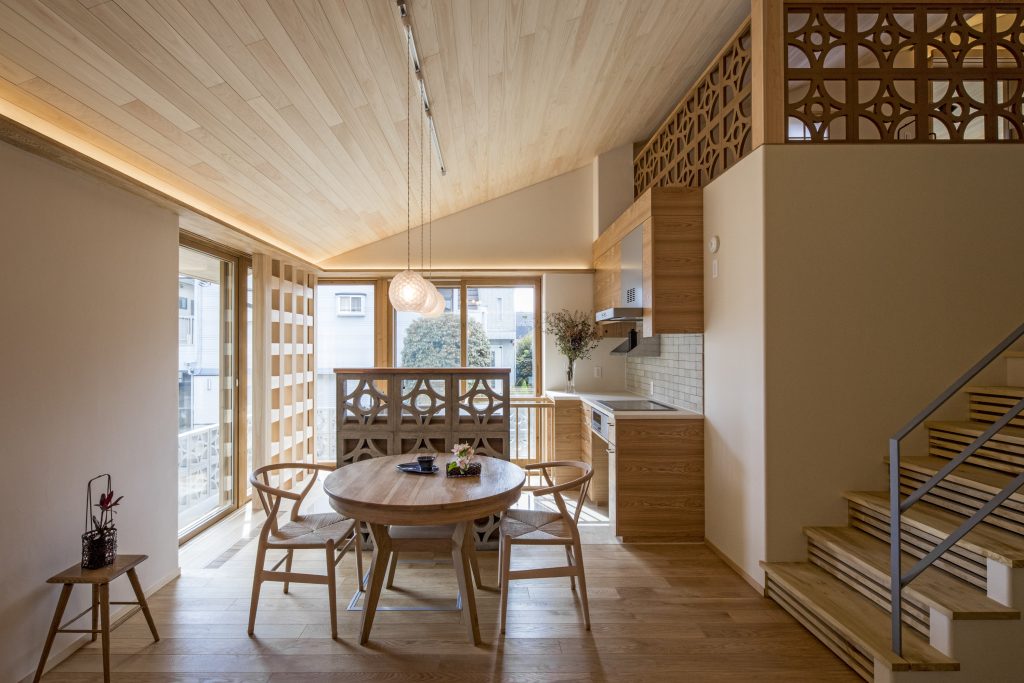 外壁・屋根は外断熱工法で冬は暖かく、夏は冷気を逃しません。開口部は高断熱・高気密サッシを採用し、熱の逃げにくい大きな窓は冬は太陽を取込み明るく暖かい空間を作ります。