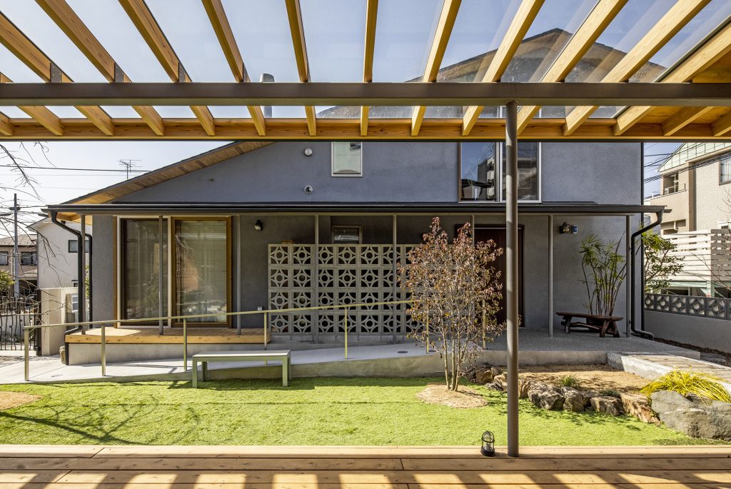 ・屋根には太陽光パネル5.85kWと蓄電池11.8 kWhを設置し、年間約75,000円の売電をする。(2025年)