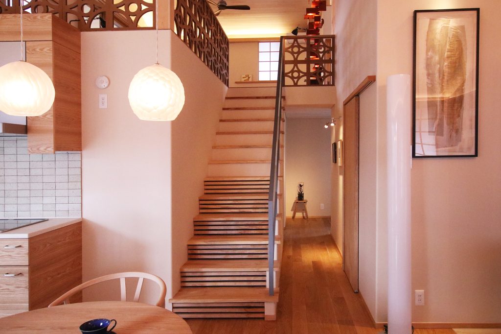・暖房は室内中央にある階段下部に設置しルームエアコンから暖気を床下に送り込み、1階床部分を温め輻射熱で室内全体がゆったりと均一温度で温まる。